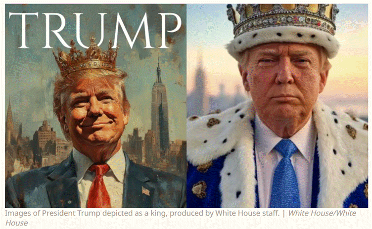 As Rasmussen said, Trump has transformed the United States into an autocracy. Trump does everything he can to disband democracy and become the first King of America. A year ago, the White House released photos styling Trump as a king on social media: